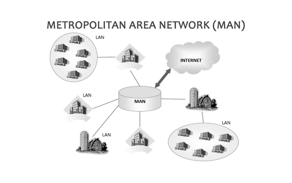 MAN (Metropolitan Area Network)adalah jarinagn yang digunakan untuk menghubungkan berbagai komputer dan perangkat dalam lingkup satu kota.