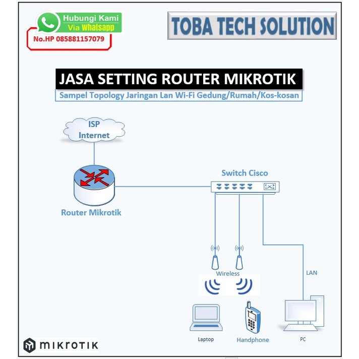 - Mikrotik WiFi Router & Akses Point: Dirancang untuk memberikan sinyal wifi yang dapat ditangkap oleh perangkat mobile seperti smartphone dan laptop.